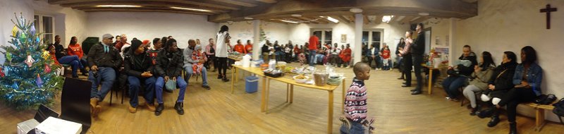 Viimaks siin veel üks pilt laupäevast enne ärasõitu. Jõulupidu pärast inglise missat Tallinnas. Laua ümber oli kogunenud inimesi 15 riigist. Theophilus Nigeeriast pani meid jõululaule laulma karaoke abil.