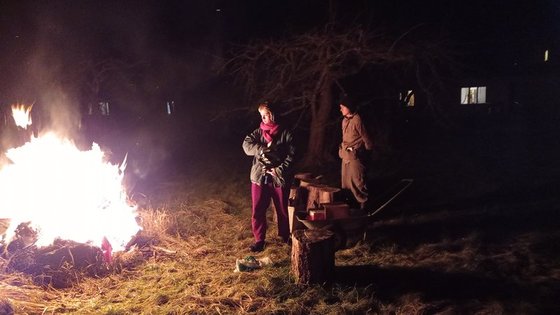 Elutoa koristamise ajal olid tüdrukud ühe kuupmeetri vana kraami lõkke jaoks välja sorteerinud.